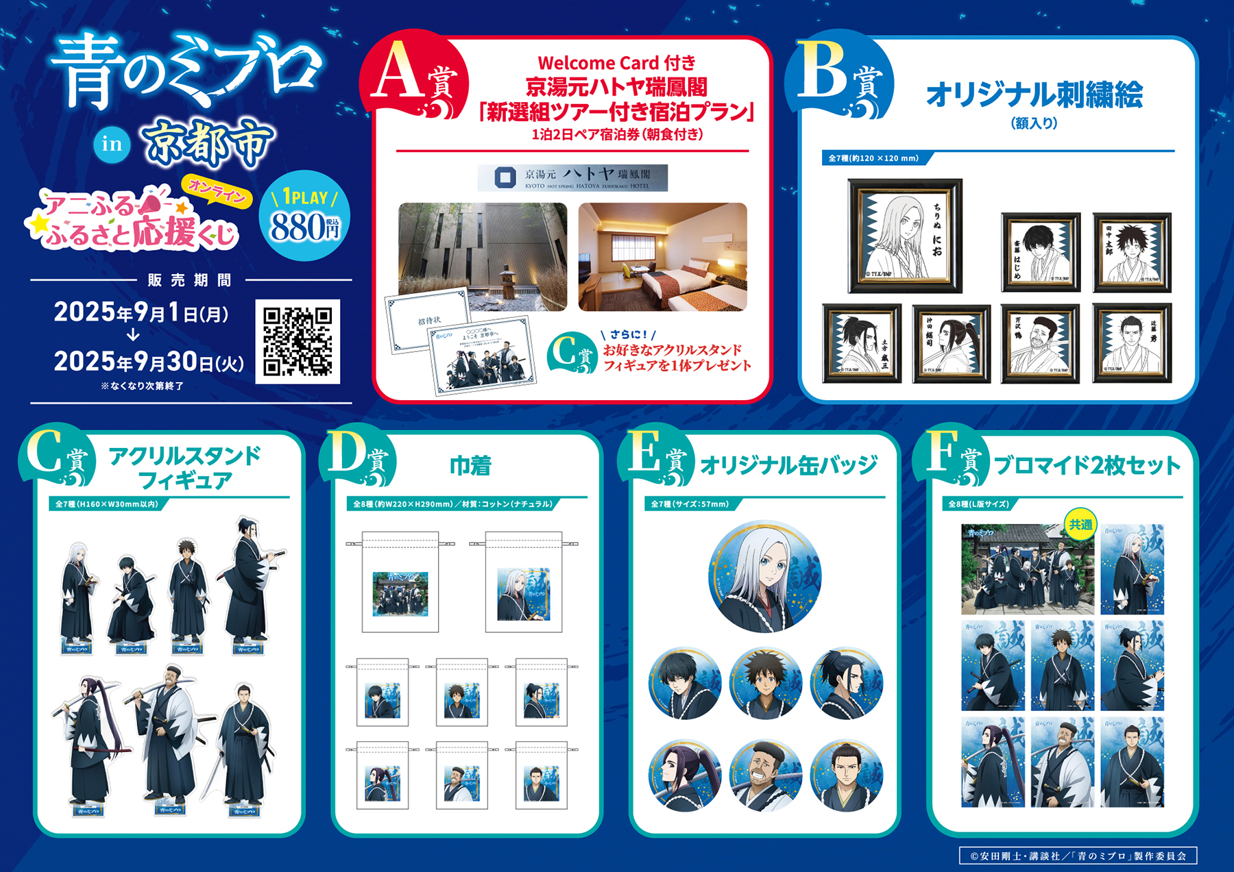 今回の利益の一部は、「青のミブロ」のゆかりの地である京都市に寄附されます。